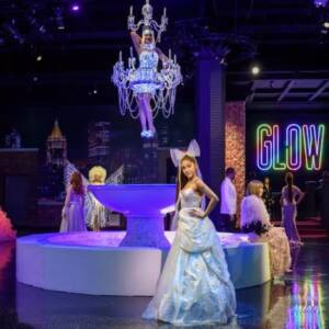 Marvel at the Radiance Wall, a mesmerizing art installation made of glass panels, crystals, and fiber optics.